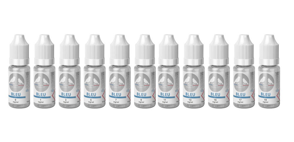 Etiquettes + Notice + Rapport d’analyses EMISSIONS BLEU + Rapport d’analyses LIQUIDES BLEU + Déclaration à l’Agence nationale de sécurité sanitaire de l’alimentation, de l’environnement et du travail (ANSES : voir Liste des produits du vapotage).